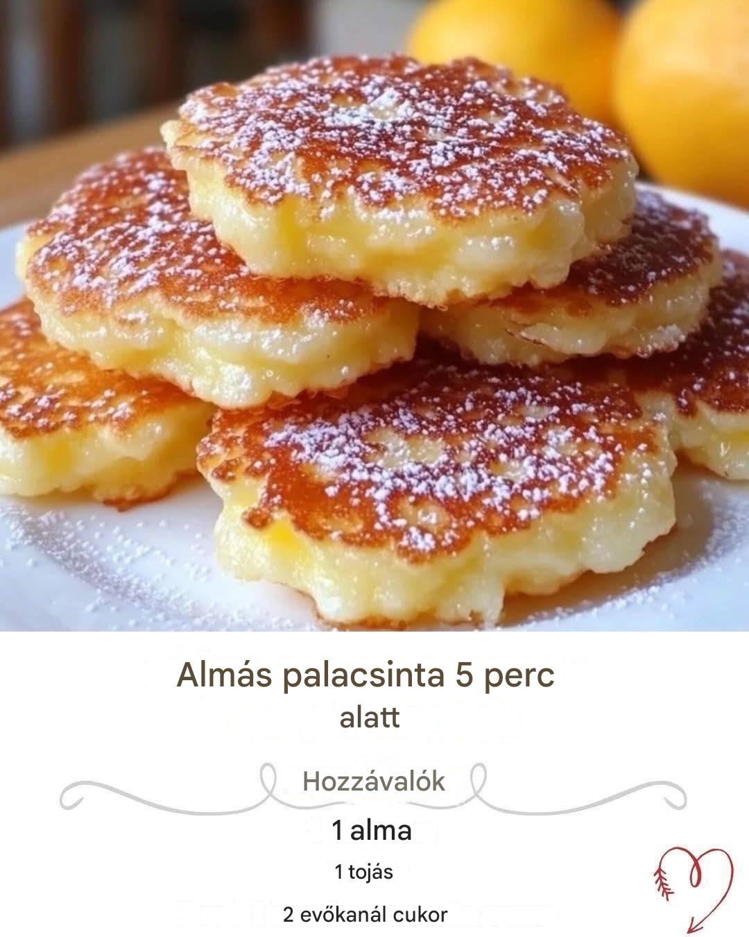 Ezek az almás palacsinták gyorsan és egyszerűen elkészíthetők, tökéletesek reggelire vagy egy gyors uzsonnára. Mindössze 5 perc alatt puha, almás palacsintákat kapsz.