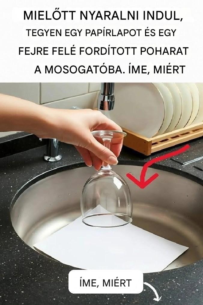 Mielőtt nyaralni indulnánk, a legtöbb ember emlékszik az alapokra: bezárni az ajtókat, beállítani az ébresztőt és kihúzni az elektronikus eszközöket a konnektorból. De van egy kevéssé ismert trükk, ami megkímélhet a kellemetlen meglepetésektől visszatéréskor – egy fejjel lefelé fordított pohár és egy darab papír behelyezése a mosogatóba.
