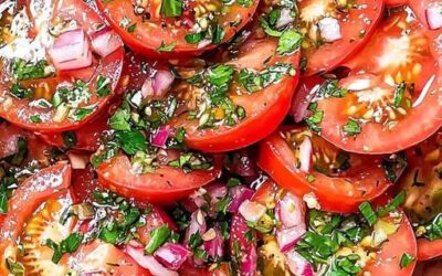 Ízletes pácolt paradicsomsaláta Színes és illatos saláta érett paradicsommal, fűszeres vinaigrette-ben pácolva. Hozzávalók: 700 g érett paradicsom 6 evőkanál extra…
