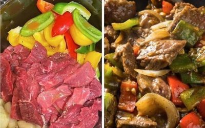 Hozzávalók: 2 font marhahús bélszíncsíkok vagy bélszín steak szeletekre vágva 3 nagy színes kaliforniai paprika vastag szeletekre vágva 1 nagy…