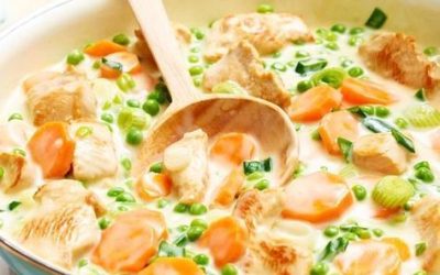 Tejszínes-zöldséges csirkeragu