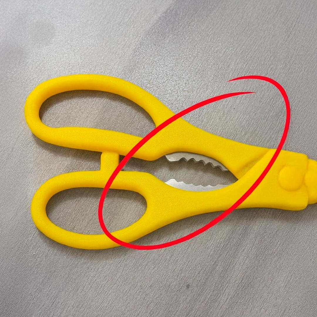 Nézd meg közelebbről a konyhai ollódat. A két nyél között, ahol az ujjaid természetesen pihennek, egy recés terület található. Amikor kissé összezárod a nyéleket, ezek a fogak tökéletesen összezáródnak.