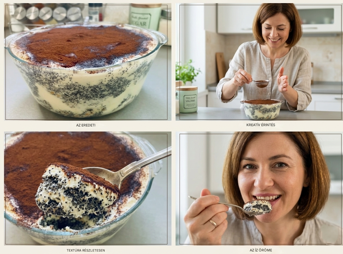A mákos guba alapja egyszerű, kifli, tej és mák. Ehhez társul most egy könnyű, krémes réteg, ami új irányba viszi az egészet. Nem idegen a magyar konyhától az ilyen átalakítás, inkább egyfajta játék a megszokott ízekkel.