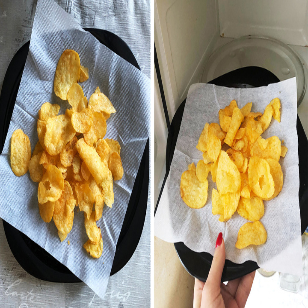 Ha nem ropog már annyira a chips, mert nedvességet kapott, akkor nem kell egyből kukába hajítani. Tegyél egy tányérra törlőpapírt, tedd rá a chipset, majd a tetejére és tegyél törlőpapírt, aztán tedd fél percre a mikróba a tányért és ismét roppanós lesz.