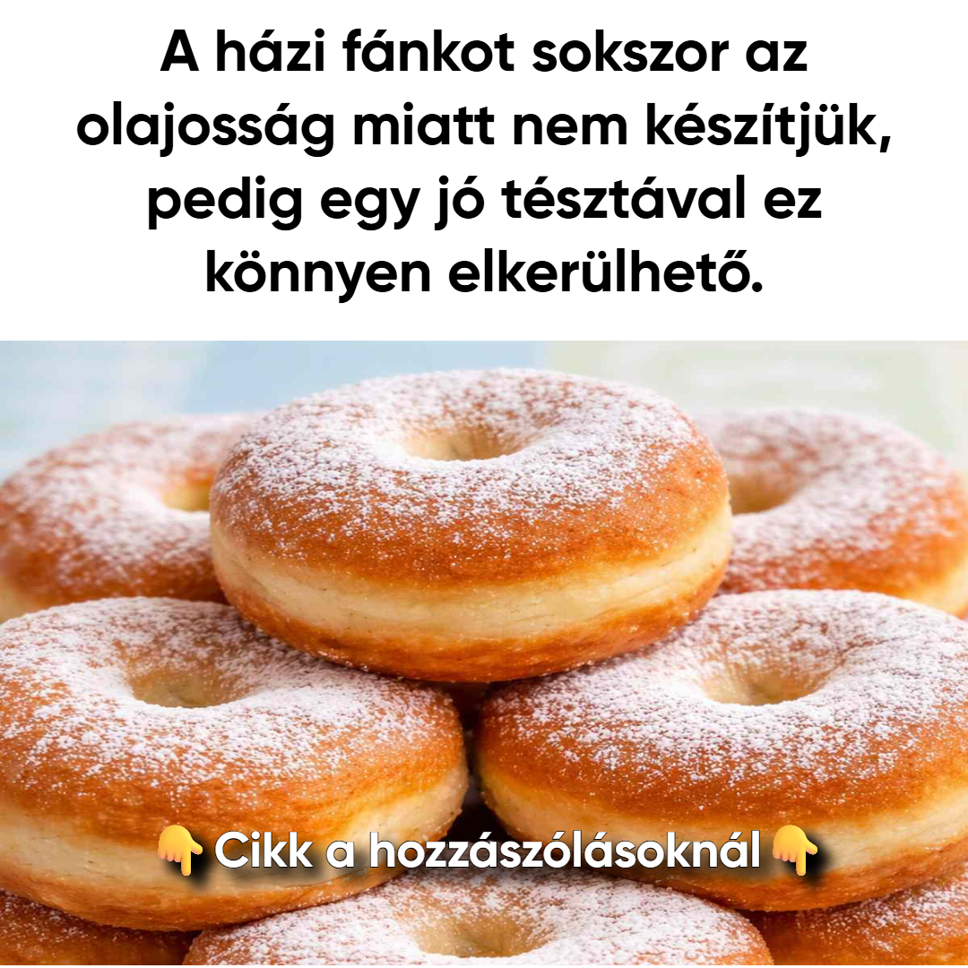 Ez a fánk olyan lett, amilyet sokan keresnek. Könnyű, levegős, nem tocsog az olajban, és másnap sem válik élvezhetetlenné. Nem cukrászmutatvány, inkább egy jól eltalált otthoni recept, amit nem kell túlgondolni.