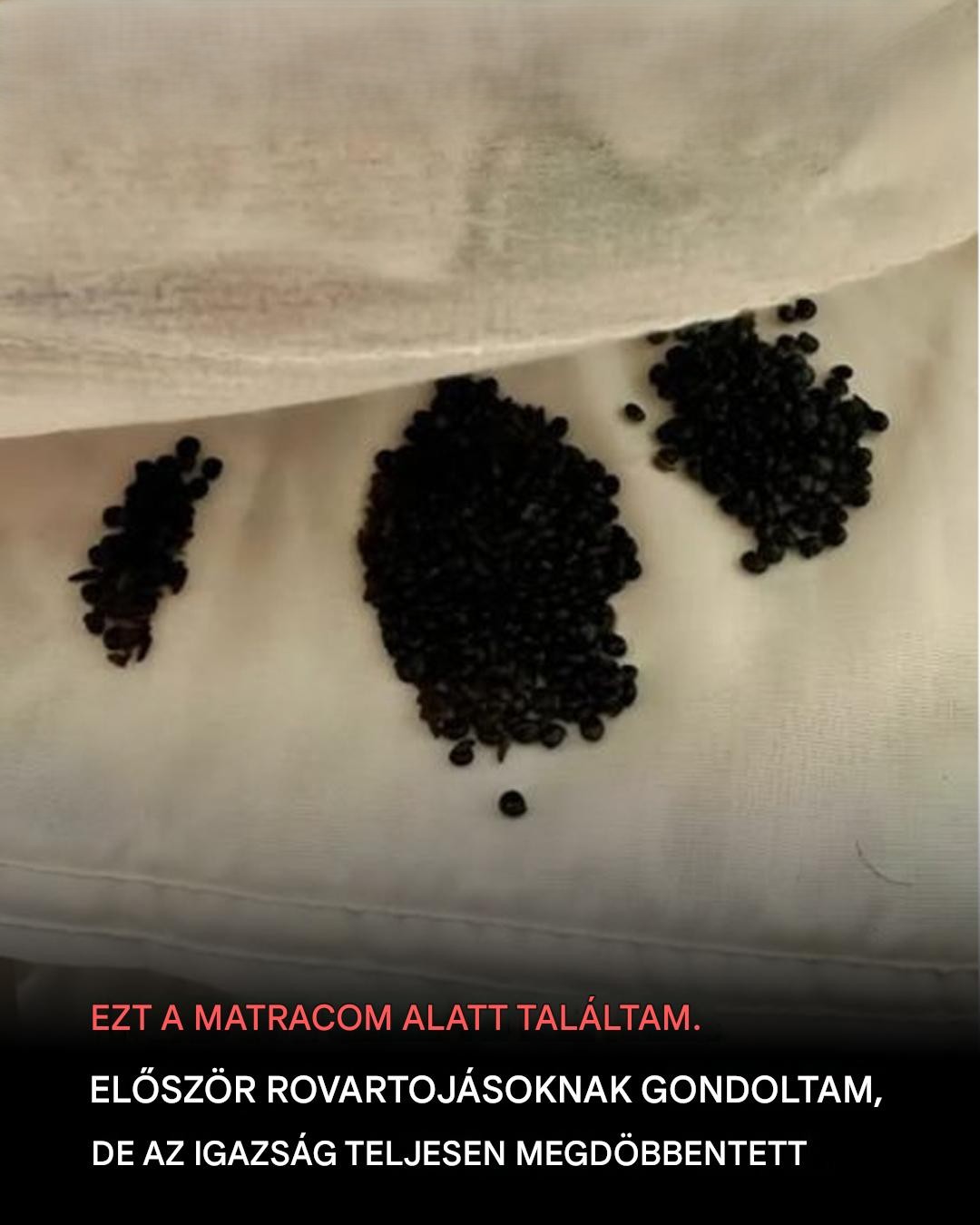 Minden tökéletesen normálisnak tűnt – egészen addig, amíg meg nem pillantottam egy apró fekete szemcsékből álló csomót az ágy sarkában.