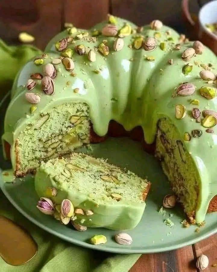A sütemény bevonása: Csepegtesd a mázat a kihűlt süteményre. Szórd meg tört pisztáciával díszítésként.