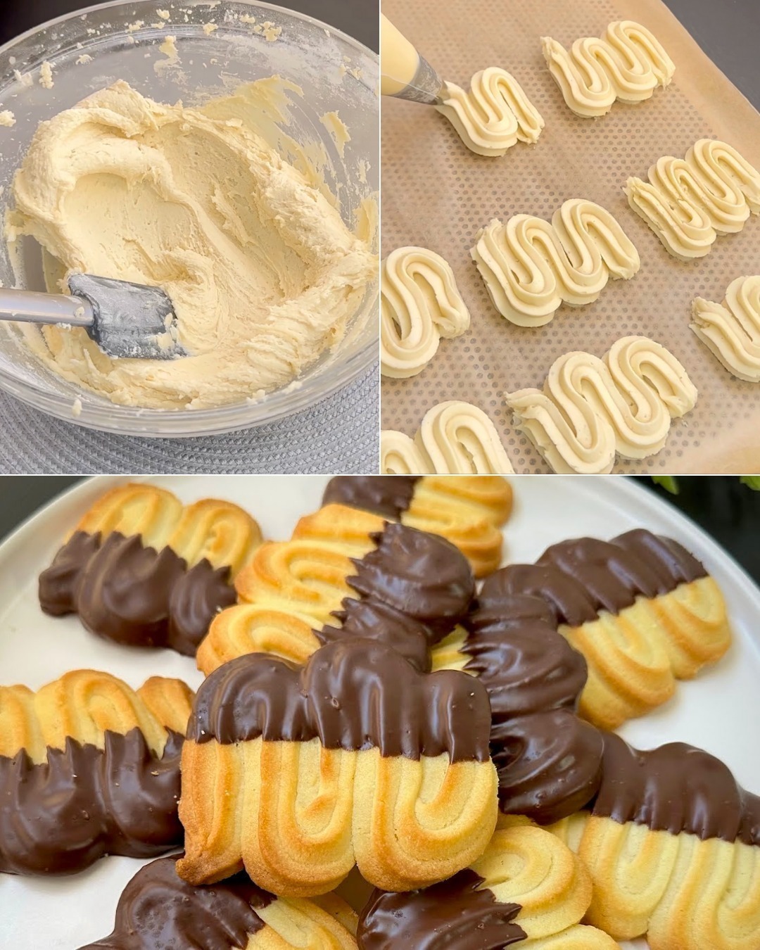 1. Blanda det mjuka smöret i grädden, tillsätt äggvitorna och florsocker. Tillsätt salt och vanilj och blanda short.