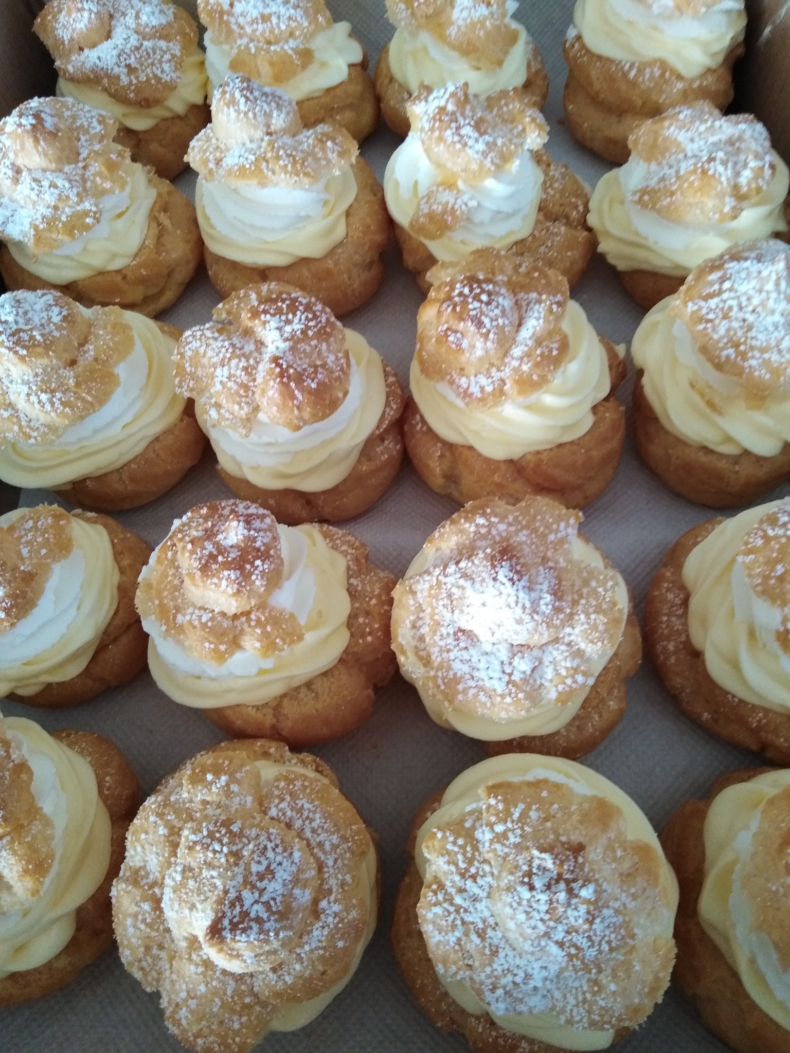 10 dkg zsírt felforraltam 1 dl vízzel, csipet sóval és csipet cukorral. Hozzáadunk 10 dkg lisztet, pár percig pirítjuk. Lehúzzuk a tűzről, kicsit (kb 5 perc) hűlni hagyjuk. Ezután egyesével hozzáadunk 3 egész tojást, mindegyikkel jól kikeverjuk. Közben a sütőt Alsó-felső módon előmelegitjuk 220 fokra. A tésztából sütőpapiros tepsire tetszés szerinti halmokat nyomunk habzsákbol. Kicsit megspricceljuk a halmokat vízzel, majd bedugjuk a, sütőbe 220 fokon kb. 10-15 percig sütjük, majd a hőfokot visszavesszuk 180 fokra. Tovább sütjük még kb. 10-15 percig.