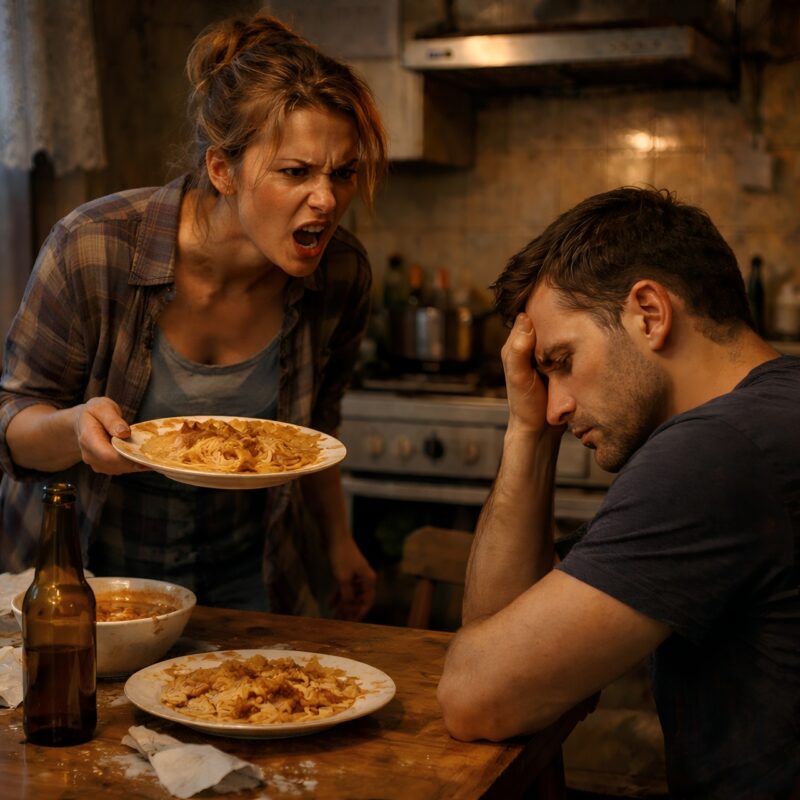 – Megőrültél, ribanc?! Megőrültél?! Éhes vagyok! Miért dobtad a kaját a vécébe?!