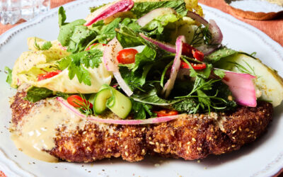 Szezámos rántott szelet tele salátával