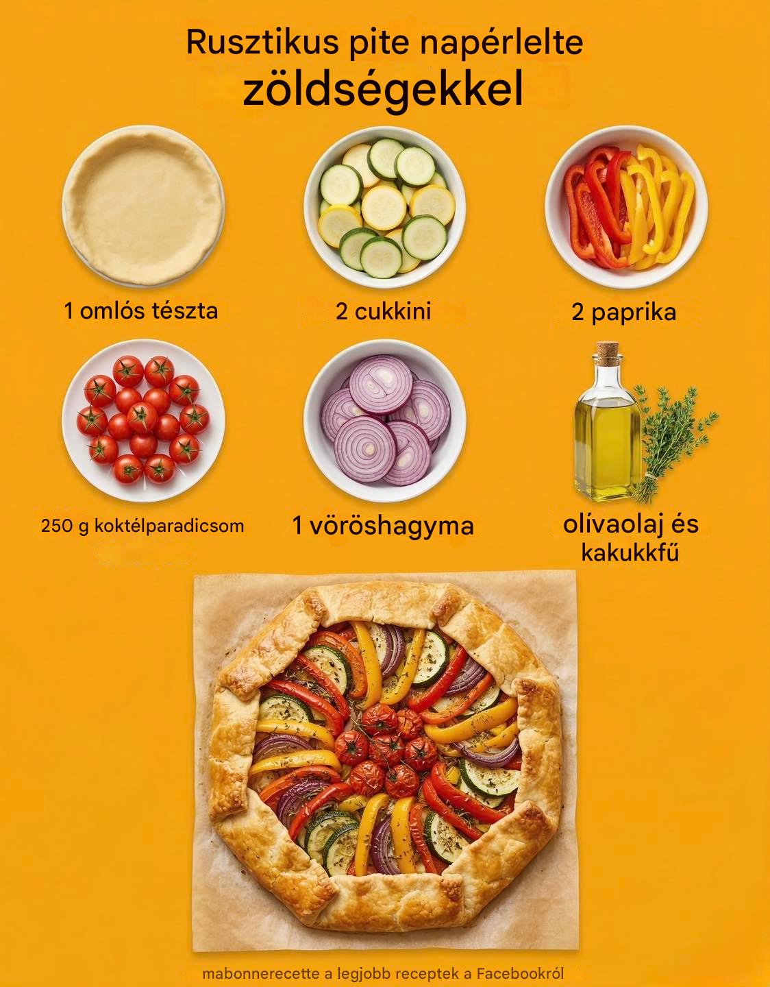 Ízletes, élénk színű nyári pite, ahol a ropogós kéreg gyönyörűen kontrasztban áll a puha, sütőben sült zöldségekkel.