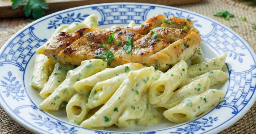 6. Forgasd össze a mártást a leszűrt tésztával, majd tálald a tetején a szaftos sült csirkemell szeletekkel.