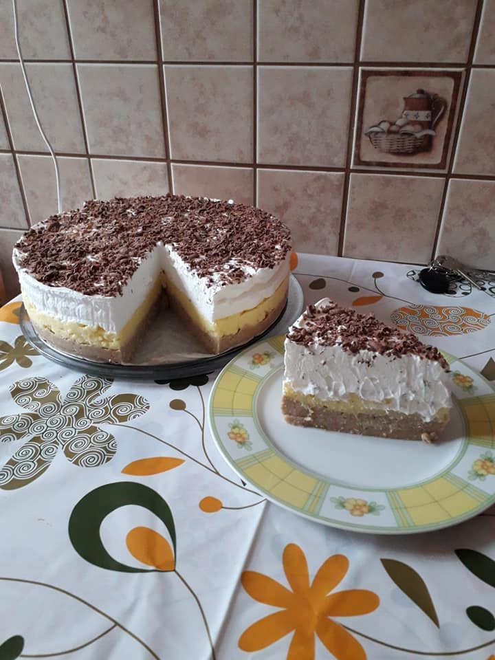 Rásimítjuk a pudingos krémet majd a habbá vert tejszínt. Hűtőbe tesszük 1 órára!
