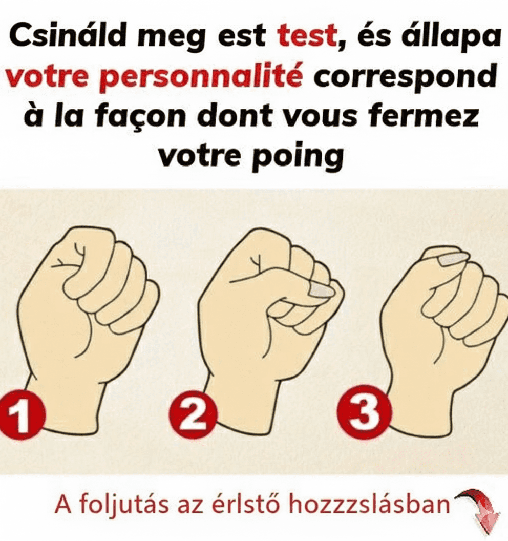 A mindennapi életünkben néha tudattalanul teszünk dolgokat. Ezeket a szüleinktől tanulhatjuk, de mindenki másképp viselkedik. Felmerül a kérdés: mi van, ha a gesztusaink összefüggenek a személyiségünkkel? Töltsd ki ezt a tesztet, hogy betekintést nyerj a személyiségedbe. Azon alapul, hogyan szorítod ökölbe a kezed. Keresd meg azt a profilt, amelyik a legjobban leírja téged.