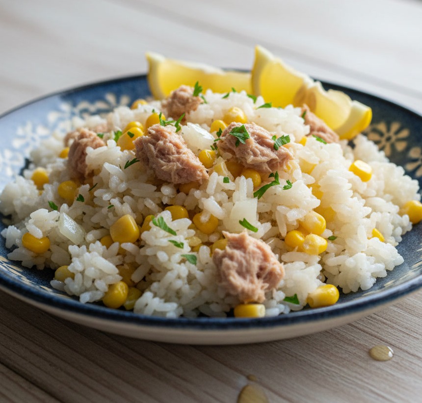 Tonhalas-kukoricás rizs (citromos, gyors)