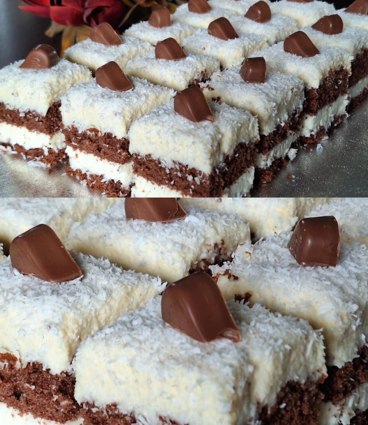 Akár fekete-fehér szeletnek is hívhatnám ezt a finomságot, de helyette hivatkozzunk az ízekre: vanília és kókusz. A tésztába természetesen kakaó is kerül, de nem ezen van a lényeg.